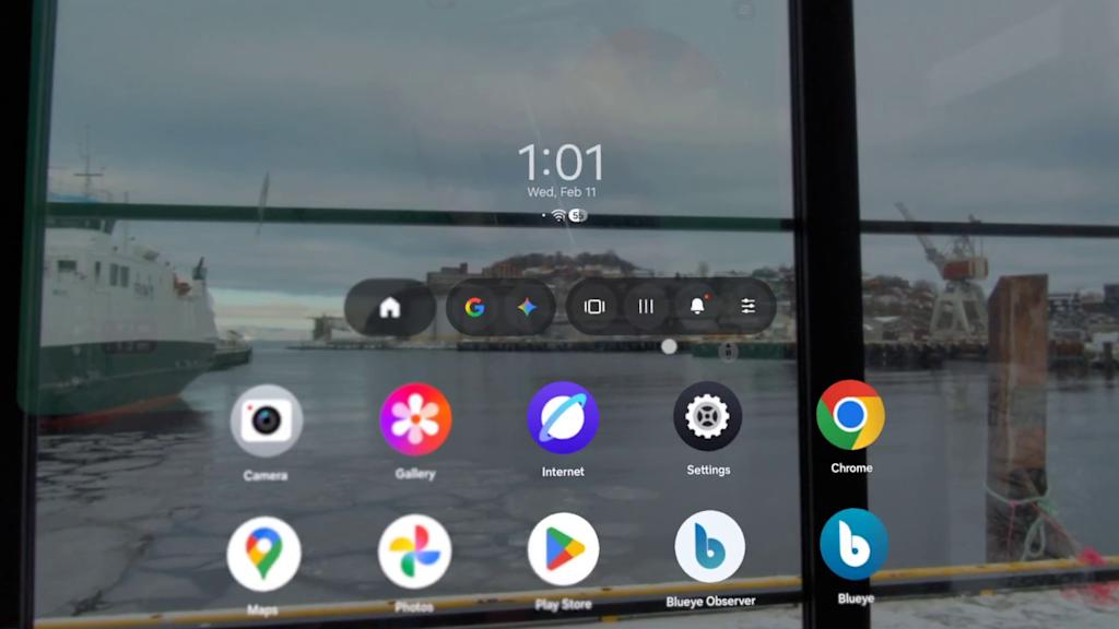 Android XR is built on Android, which means it can run existing Android apps from Google Play in virtual windows. The Blueye App is available on Android, and runs on the Galaxy XR, providing the same core experience as on a tablet — but with the screen as large as you want it to be, floating in space before you.